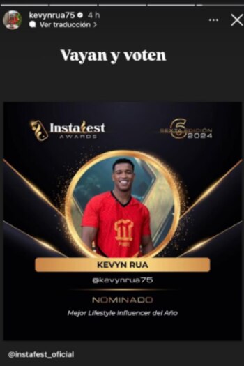En esta sєxta edición, los ganadores serán elegidos por los usuarios de redes sociales, quienes votarán a través de me gusta y comentarios en las publicaciones de los nominados, por lo que Kevyn Rúa está pidiendo el apoyo de sus seguidores. El mensaje decía “vayan y voten” con una imagen de la nominación que recibió.