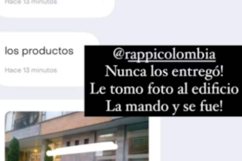 “Esta persona me acaba de robar en Rappi Colombia. Se llevó las cosas y nunca las entregó, le tomó foto al edificio, la mandó y se fue”. escribió. Esta modalidad de robo se ha vuelto común dentro de la plataforma de domicilios cuando el pago se realiza mediante tarjetas, los pedidos no llegan, o llegan incompletos y los usuarios deben comunicarse con el soporte de la aplicación para obtener una solución.