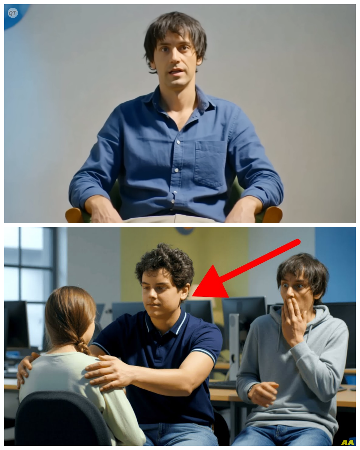 Pero cuando Carlo me vio entrar al salón de clases, inmediatamente se acercó y puso su mano en mi hombro.