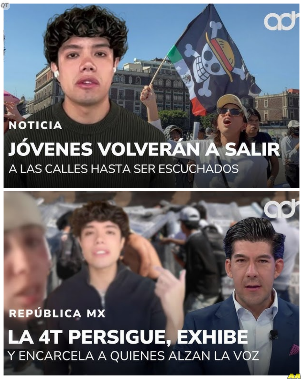 Las imágenes de la marcha aparecían en la pantalla, mostrando a miles de jóvenes con pancartas que decían: “¡Escúchenos!” y “¡No más represión!”.