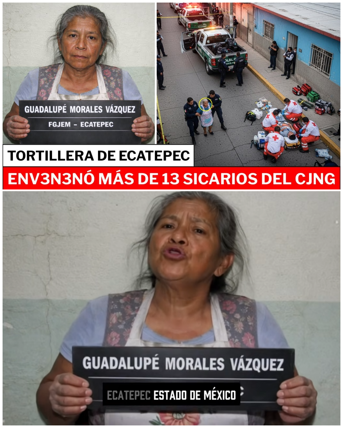 Una abuelita de 68 años es detenida frente a su puesto de tortillas mientras paramédicos de Cruz Roja intentan reanimar a un hombre que convulsiona en pleno pavimento.